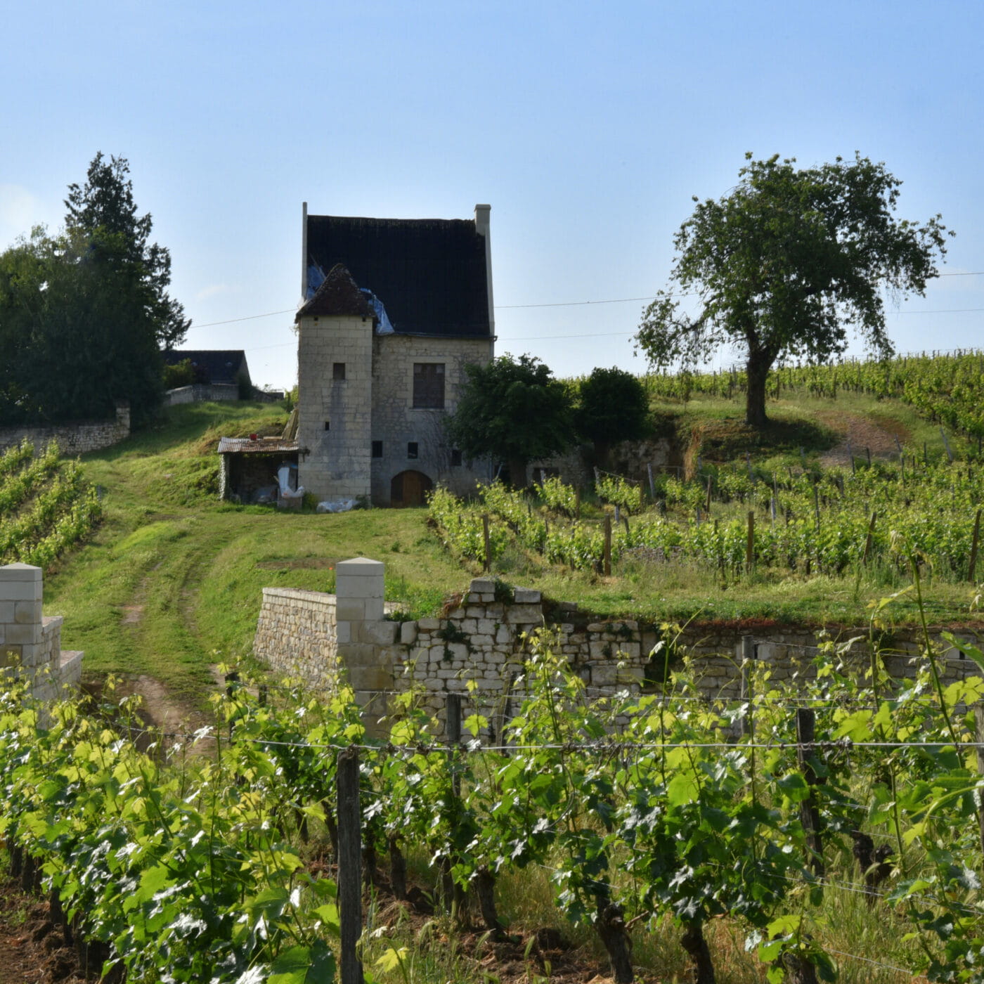 La Noblaie è una proprietà con una lunga tradizione vitivinicola. Già alcune centinaia di anni fa, le sue terre erano destinate principalmente alla coltivazione della vite. Le strutture storiche, come i torchi, le cantine e le vasche scavate nel tufo, testimoniano questa antica attività. Il nome del borgo, “Le Vau Breton”, deriva dalla tradizione locale e significa “Valle del Cabernet Franc”, vitigno esclusivo del vino rosso di Chinon. Nel 1952, Jacqueline e Pierre Manzagol acquistarono la proprietà, avviando lavori di restauro e una gestione moderna del vigneto. Oggi, i vigneti vengono coltivati secondo i principi dell’agricoltura biologica, circondati da boschi e intercalati da colture cerealicole. Le attività agricole sono affiancate dalla conservazione del patrimonio architettonico, inclusa la restaurazione delle antiche cantine. L’approccio viticolo mira a rigenerare i suoli e a gestire la vigoria e i rendimenti delle viti in base alle esigenze di ogni singolo terreno. Le uve vengono raccolte a mano, selezionando i grappoli al momento della maturazione ottimale per ogni cuvée. La vendemmia può avvenire in più fasi per separare le diverse caratteristiche dei terreni e delle uve. La cantina sfrutta la gravità per ridurre l’ossidazione durante l’incubazione, e una vasca scavata nel tufo, risalente a secoli fa, è dedicata alle vinificazioni.
